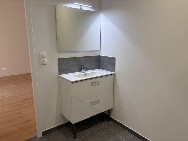 REFAIT A NEUF, ce F2 BIS, au 1er étage avec petit ascenseur, se compose d'une d'entrée donnant sur un coin cuisine équipée de meubles hauts et bas, une plaque induction et une hotte, une grand séjour, une chambre avec des placards, une bureau ou une petite chambre, une salle d'eau avec un branchement pour une machine à laver le linge et un wc.