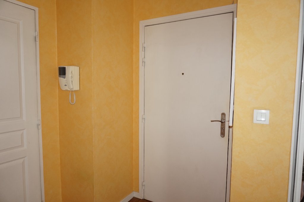 Appartement de type F2 avec une place de parking, en bon état, au 5e étage avec ascenseur, se composant d'un séjour donnant sur un balcon, une cuisine équipée, une chambre, une salle de bain et un wc. Le chauffage et l'eau chaude sont assurés par une chaudière au gaz et les fenêtres sont à double vitrage.